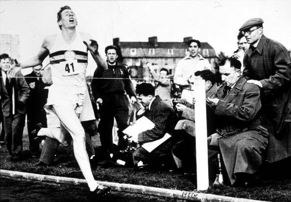 Roger Bannister, with pacing help from Chris Brasher and Chris Chataway, becomes the first to run a mile faster than four minutes, 3:59.4.