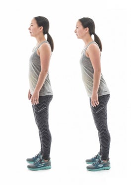 - Allow your rib cage to lean in as if you are running against a strong wind. Note that your bum gently untucks.