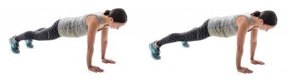 - Start in a plank position with hands directly under shoulders and feet at hip-width. Modify this exerciseif you have diastasis recti by placing hands on an elevated surface, like a step or a table.