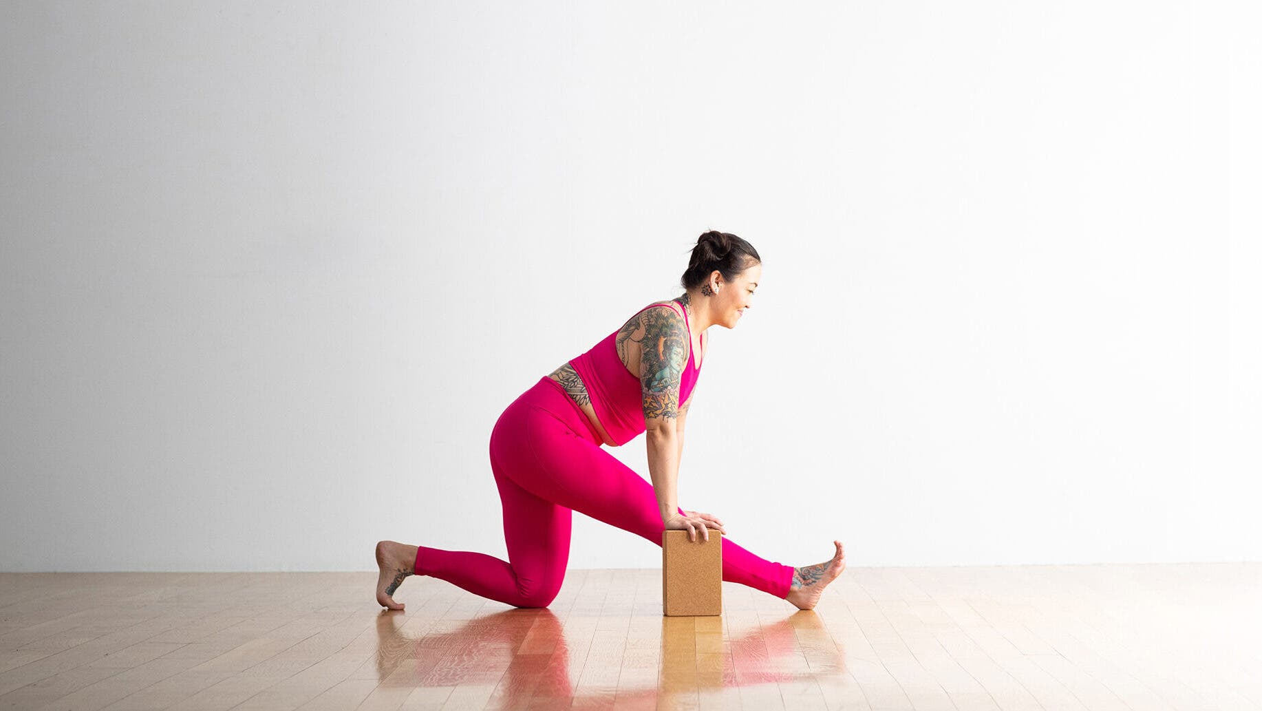 Variations: The placement of your bent knee will affect the stretch for your back. If it’s hovering in space, support it by sliding a block, folded blanket, or pillow beneath your knee. To stretch your back more, try sliding your bent knee a few inches back and farther to the left.
